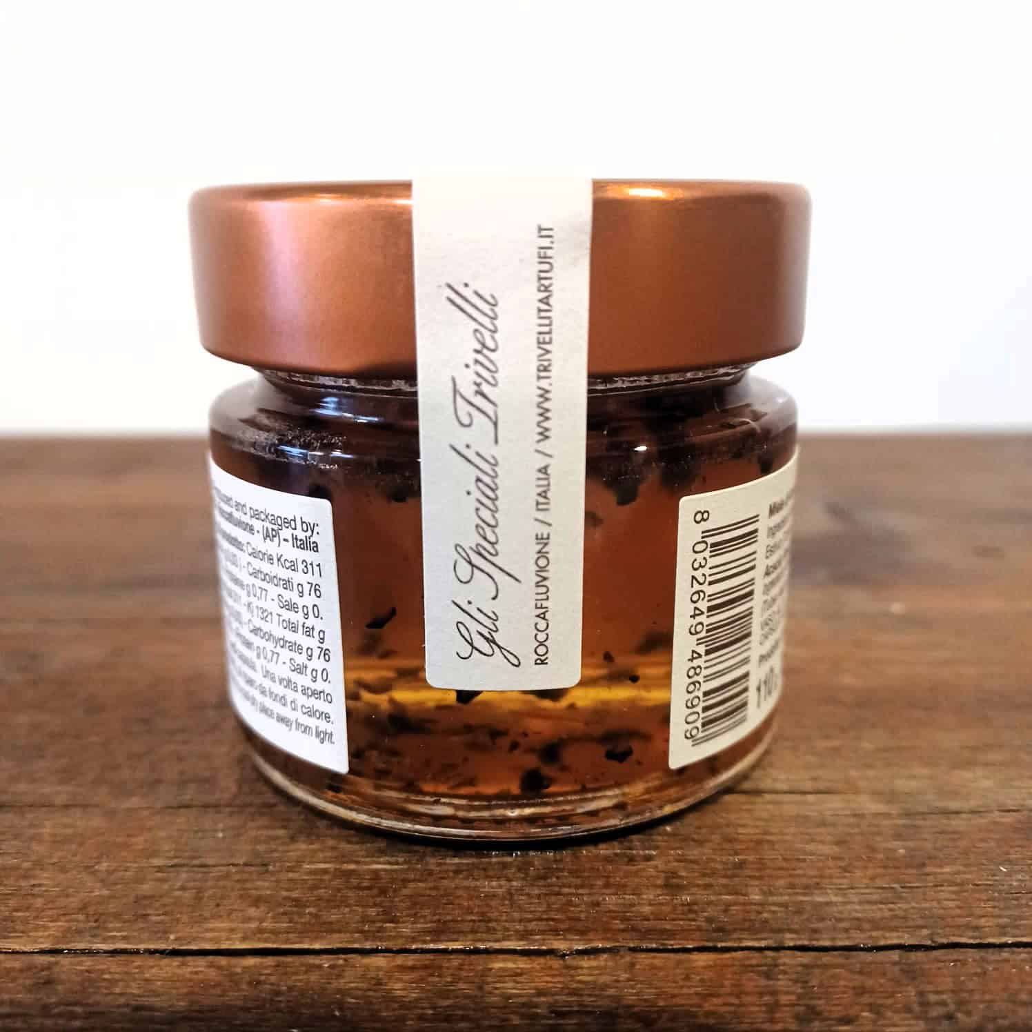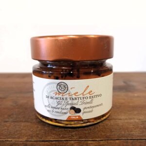 Ingredienti: miele di acacia 94,8%, tartufo estivo (Tuber aestivum Vitt.) 5%, aroma.