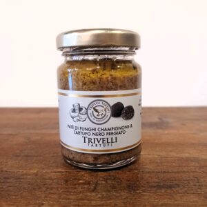 Ingredienti: funghi champignon (Agaricus Bisporus e rel. Gruppo) 75%, olio extravergine di oliva, tartufo estivo (Tuber aestivum Vitt.) 8%, sale, aroma.